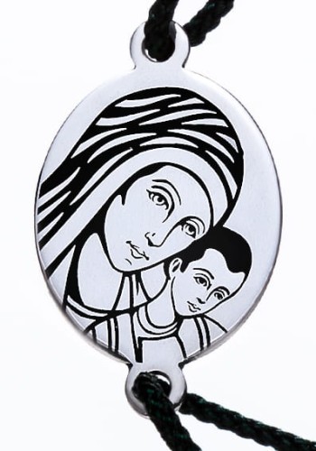 Bransoletka przedstawia Matkę Bożą trzymającą Jezusa. Wizerunek inspirowany ikoną Drogi autorstwa Kiko Argüello, inicjatora Drogi Neokatechumenalnej.