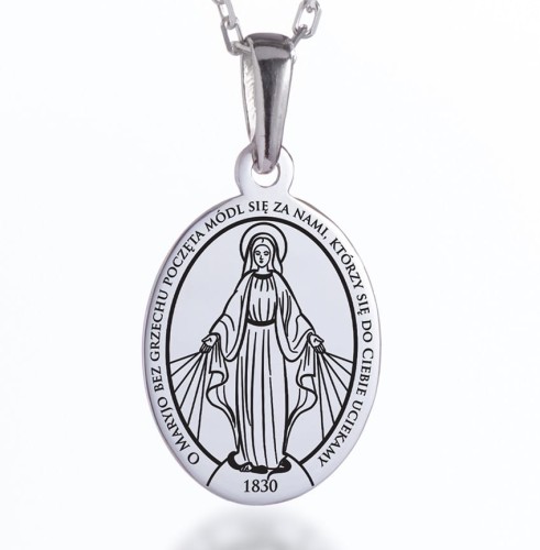 Komplet - srebrny Cudowny Medalik wraz ze srebrnym łańcuszkiem na Chrzest