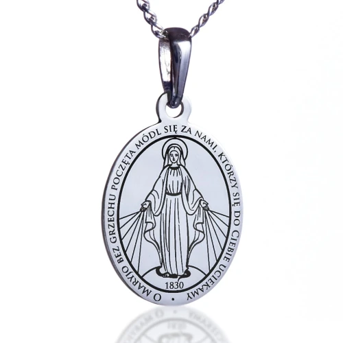 Komplet - srebrny Cudowny Medalik wraz ze srebrnym łańcuszkiem na I Komunię Świętą